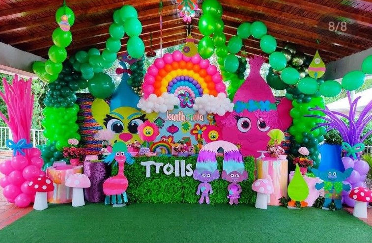 Hire a face painter or set up a DIY station where guests can paint their faces with Trolls designs. Offer stencils, glitter, and bright paints to create looks like Poppy’s flowers or Branch’s grumpy expression.